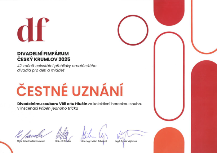 kde bylo velmi kladně přijato a navrženo pro postup na celkem tři celostátní přehlídky.