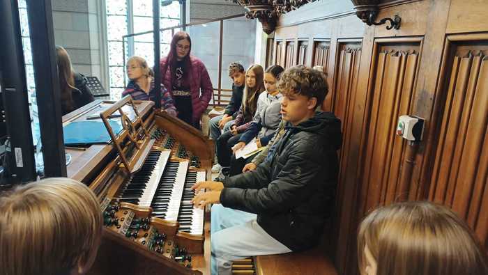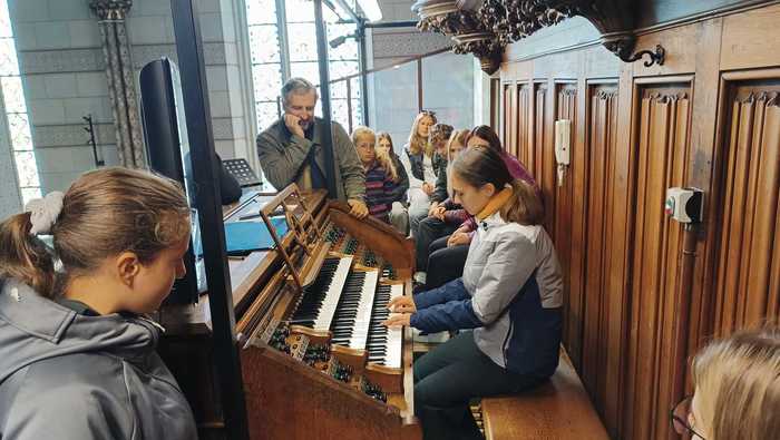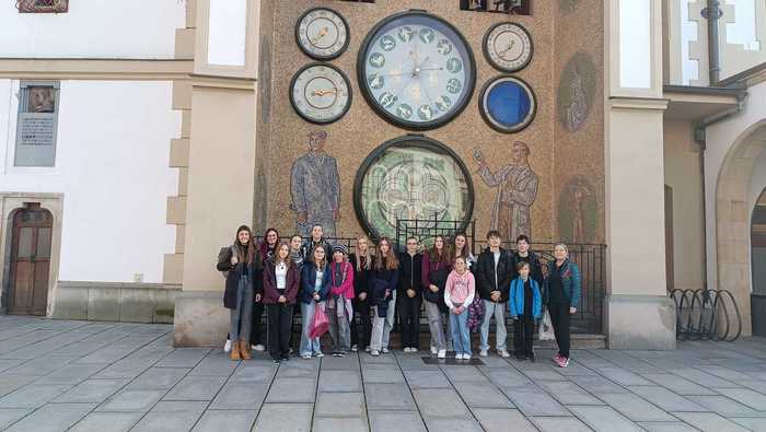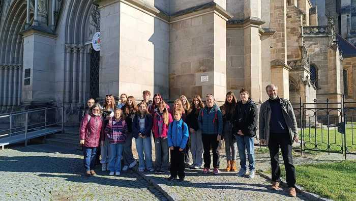V úterý 4. listopadu se uskutečnila exkurze v Olomouci, na kterou se vydala skupina 16 žáků z naší školy. Byli to především klavíristé a varhaníci, ale i příznivci královského nástroje - varhan. Žáky doprovázely paní učitelky H. Mižičová, R. Běhůnková a R. Slaninová. Hlavním bodem programu byla prohlídka katedrály sv. Václava a především jejich varhan. O těch nám velmi poutavě povyprávěl katedrální varhaník pan Karel Martínek. Katedrála v Olomouci má celkem patery varhany – hlavní a největší na kůru, ale také další blízko bohoslužebného prostoru, menší v chórové kapli i kryptě. Pan Martínek nám varhany nejen předvedl, ale také jsme si na ně mohli zahrát a ptát se na nejrůznější dotazy. Celkem dvouhodinová prohlídka byla korunována mistrovskou improvizací pana Martínka na námi vybraná témata. Po tomto inspirativním dopoledni jsme se vydali nejen doplnit energii vydatným obědem, ale také si prohlédnout město. Nahlédli jsme i do kostelů P. Marie Sněžné, sv. Michala a sv. Mořice. A protože nám po celý den přálo hezké a slunečné počasí, nemohli jsme vynechat ani vyhlídku z věže posledně zmiňovaného chrámu. Celý den jsme prožili hezky a mezi žáky vznikla i nová kamarádství, což nás velmi těší. Snad se nám podaří někdy příště uskutečnit další podobný výlet, tentokrát za velkými varhanami v kostele sv. Mořice. Závěrem děkujeme spolku SRPŠ za úhradu nákladů spojených s touto exkurzí.