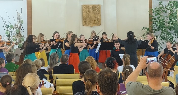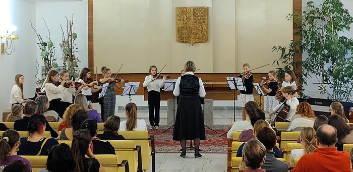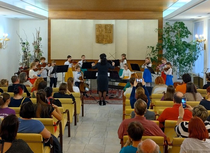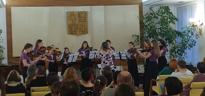 Poslední únorový den naše škola hostila okresní přehlídku smyčcových souborů. Přehlídka se konala v obřadní síni městského úřadu a posluchači mohli slyšet celkem 4 soubory - Strunku a Strunečku pod vedením p. uč. Andrey Poštulkové, Žabky a klapky pod vedením p. uč. Veroniky Stoklasové a soubor ZUŠ Opava pod vedením p. uč. Lenky Židkové.